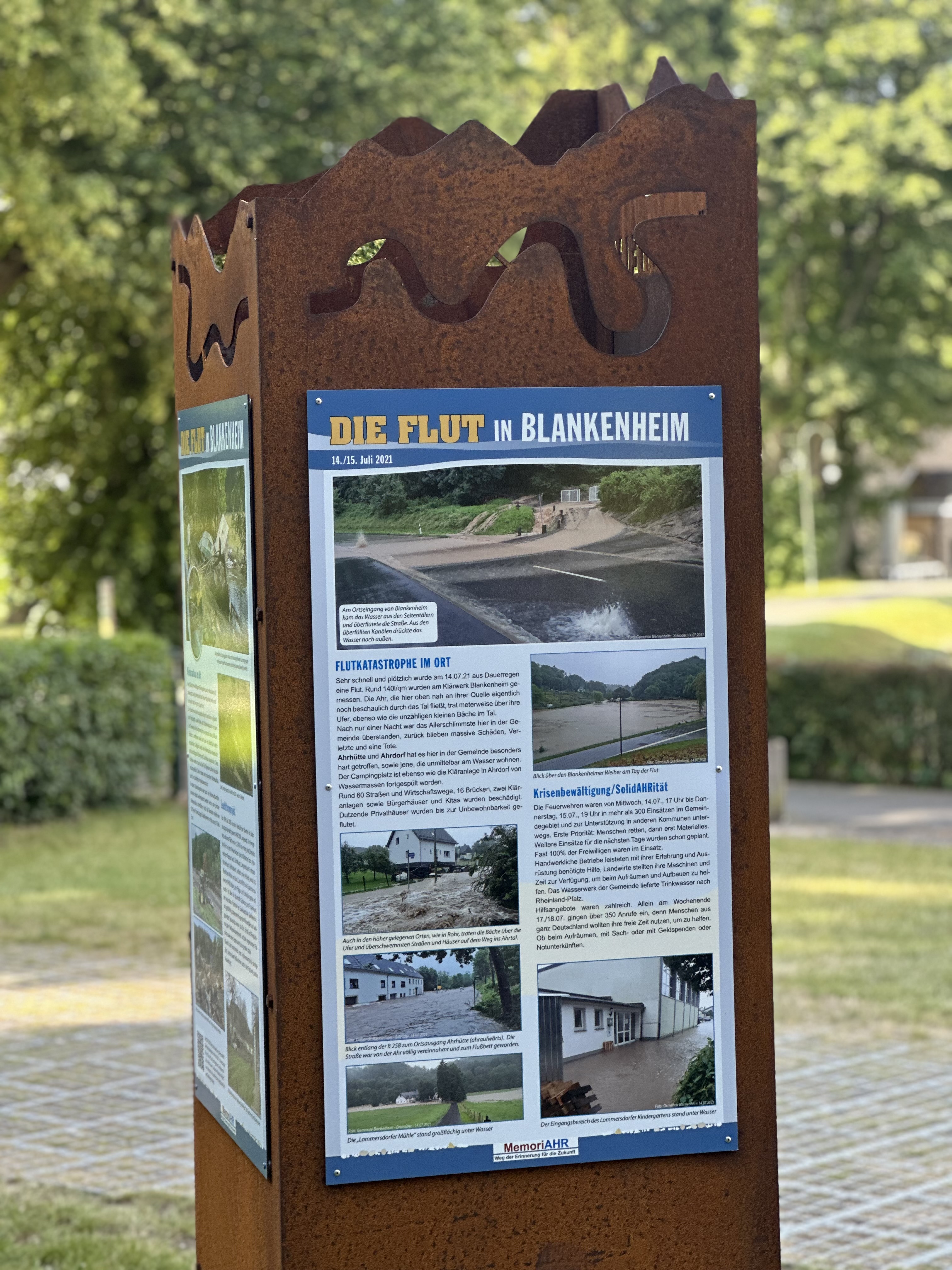 MemoriAHR: Durch die engagierte Arbeit der 31 ehrenamtlichen Mitglieder wurden Texte zu allen betroffenen Orten geschrieben und Fotos zusammengetragen, sowohl für die Informationstafeln der Stelen als auch für die virtuelle Ausstellung „MemoriAhr - Die Flutkatastrophe im Ahrtal 2021 - Erinnerungen für die Zukunft“.