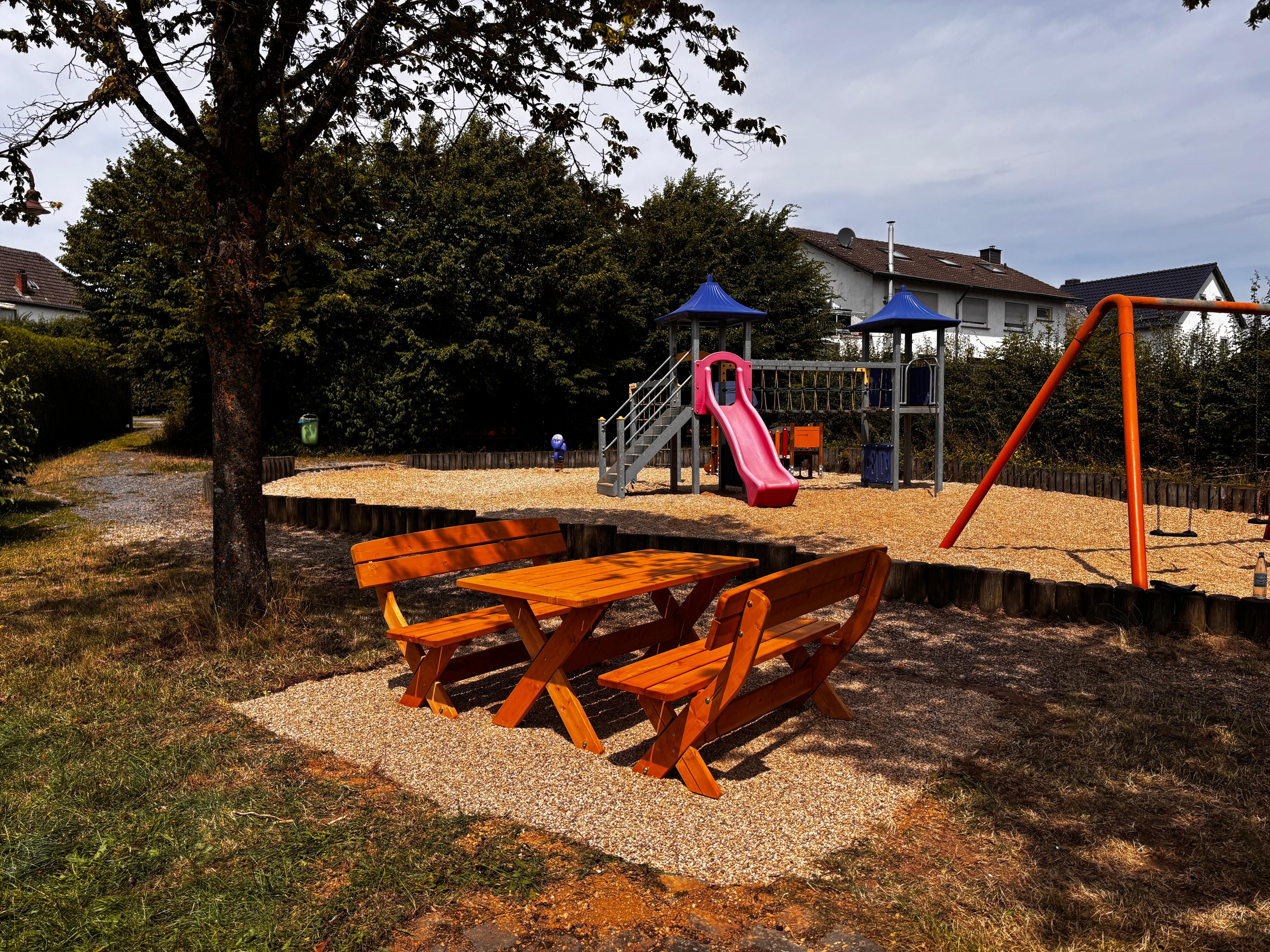 Am Samstag, 19. Juli installierte der Vorstand des Vereins dauerhaft eine Sitzgruppe in unmittelbarer Nähe zum Spielbereich unter schattenspenden Bäumen.
