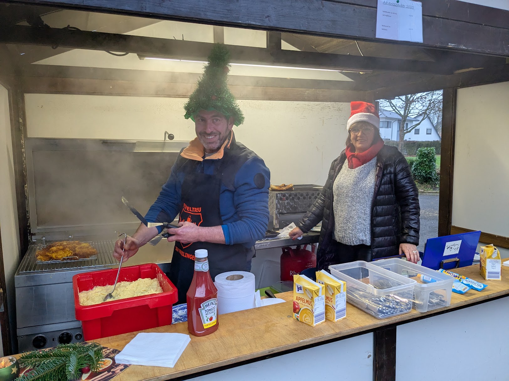 So entschied man sich, anstatt des gewohnten Flammkuchens in diesem Jahr frisch gebackene Reibekuchen anzubieten. Und die kamen bei den zahlreichen Gästen tatsächlich dann besonders gut an. Schon nach kurzer Zeit war die eigentlich vorgesehene Menge ausverkauft, so dass kurzfristig "nachgeordert" werden musste.