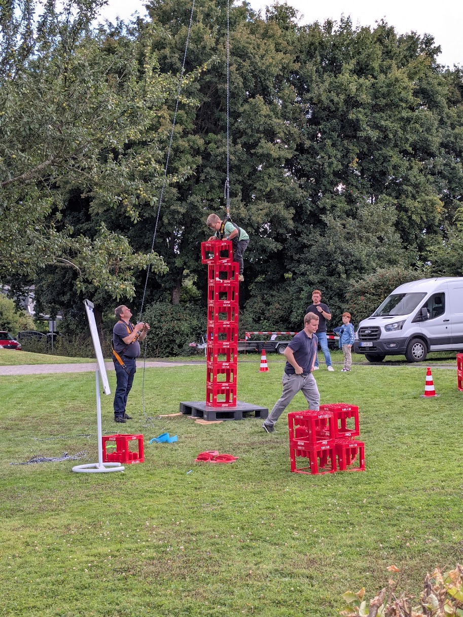 Beim Kistenstapeln konnte man sein sportliches Geschick in wackeliger Höhe zeigen.