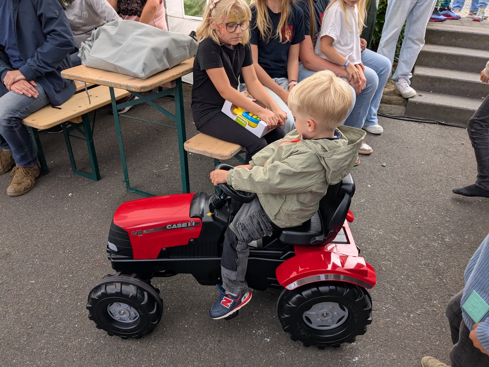 Bei der Ziehung des Hauptpreises konnte sich der kleine Henry über die Erweiterung seines Fuhrparkes freuen. Der von Florian Giefer dankenswerter Weise gesponserte Trettraktor wurde dann auch sofort hinsichtlich seiner Fahreigenschaft ausprobiert.