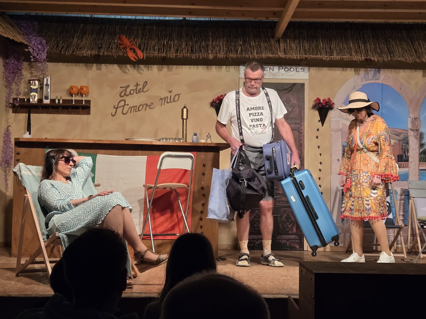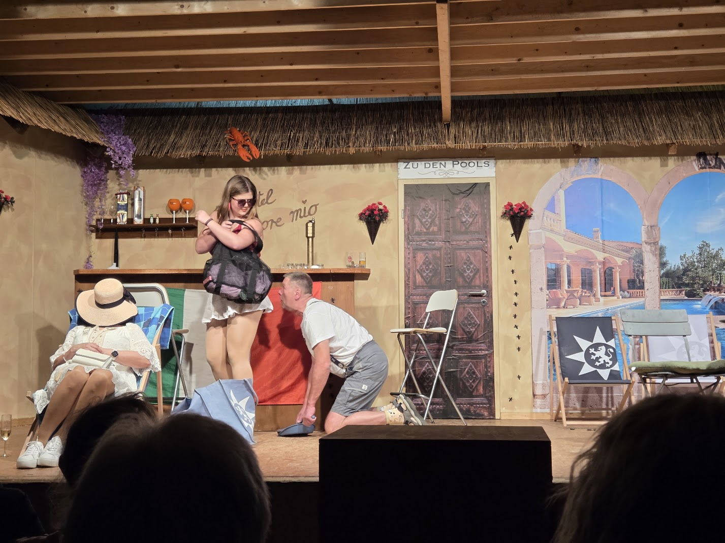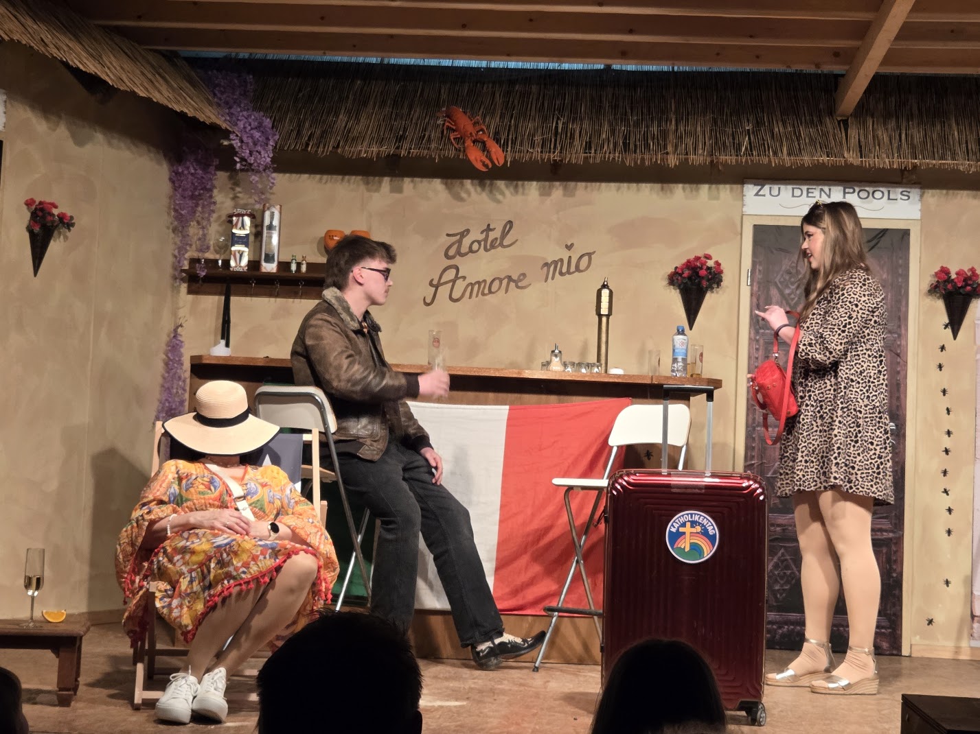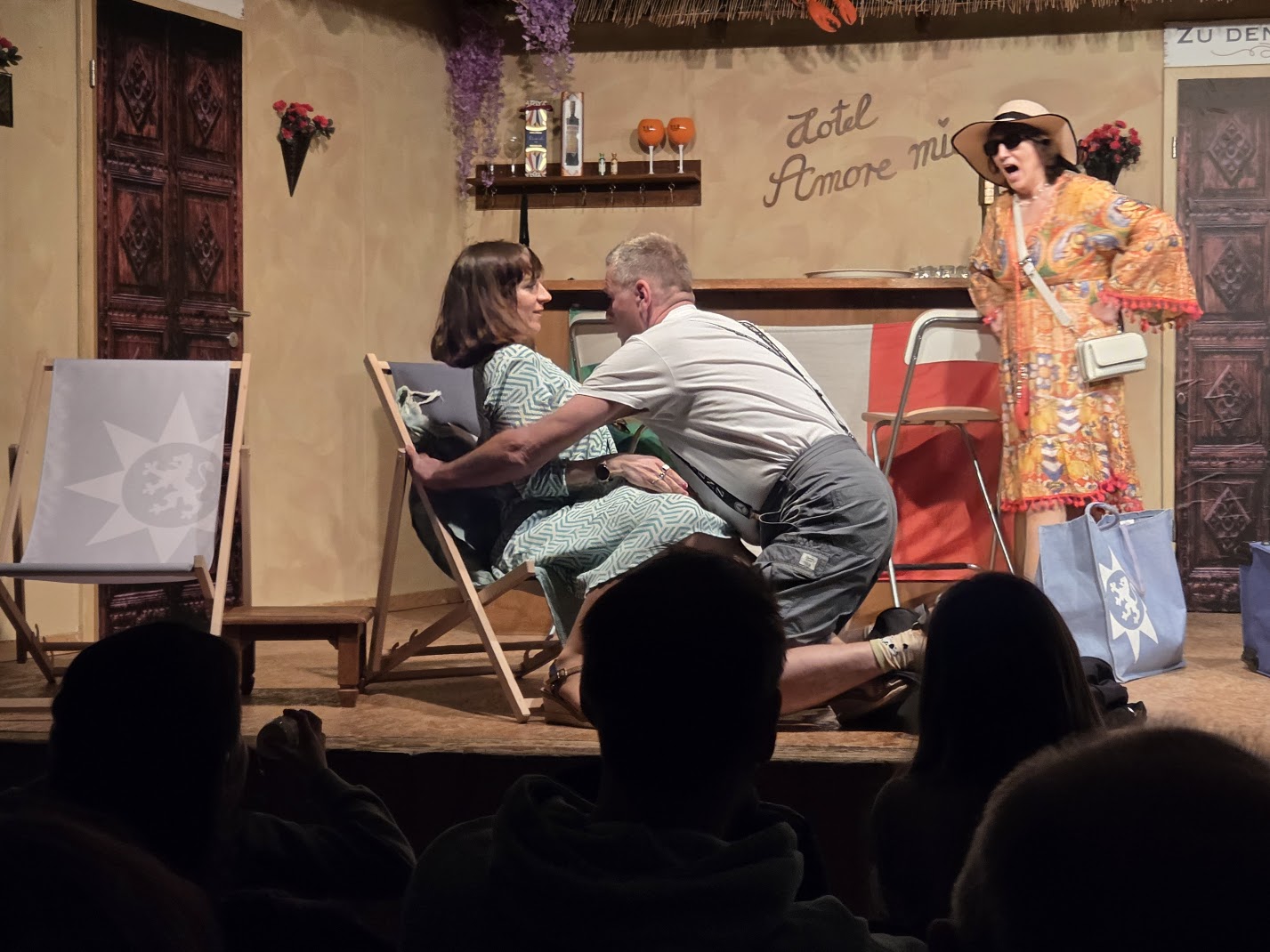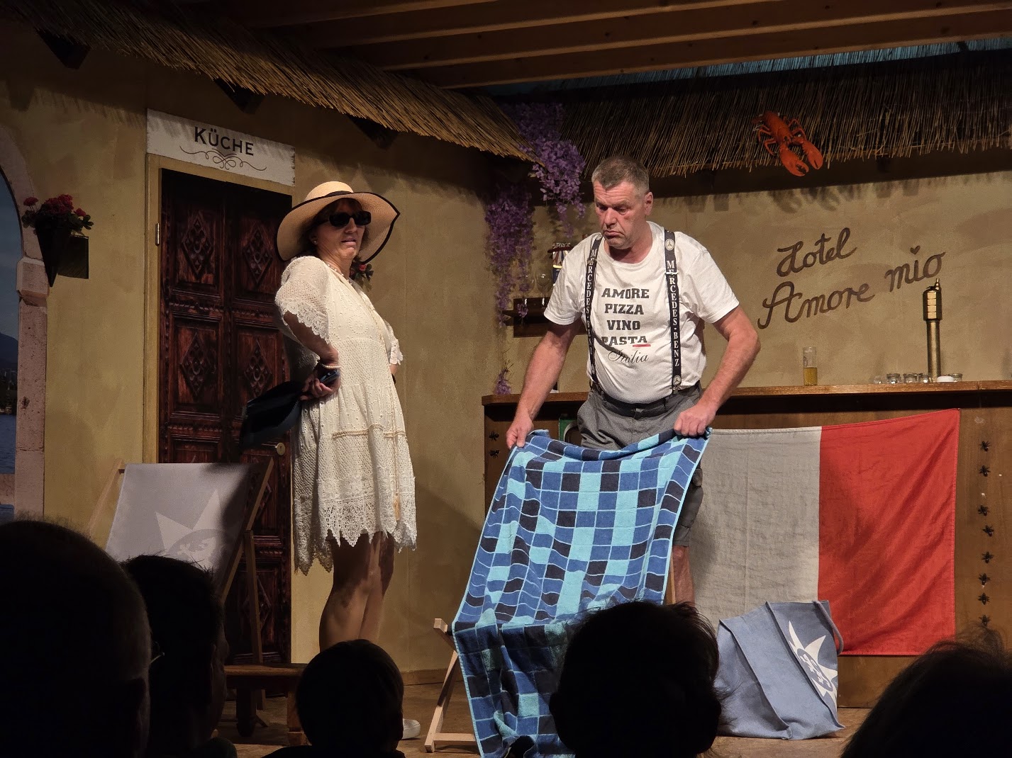 Auserkoren hatten sie sich für ihre Eskapaden das kleine Familienhotel „Amore Mio“, das von der geschäftstüchtigen, wegen der Ameisenplage im Hotel aber ziemlich gestressten Teresa (Petra Staiti) temperamentvoll geführt wird. Ihr Sohn Angelo (Max Hierlwimmer), charmant und gewieft, geht der Arbeit gern aus dem Weg und flirtet lieber mit den Damen des Hauses, auf Wunsch natürlich mit original italienischem Akzent.