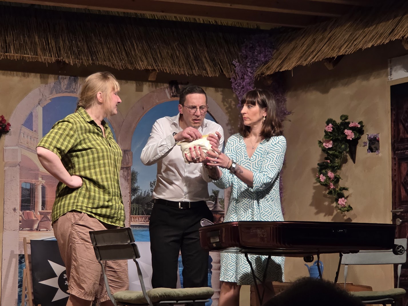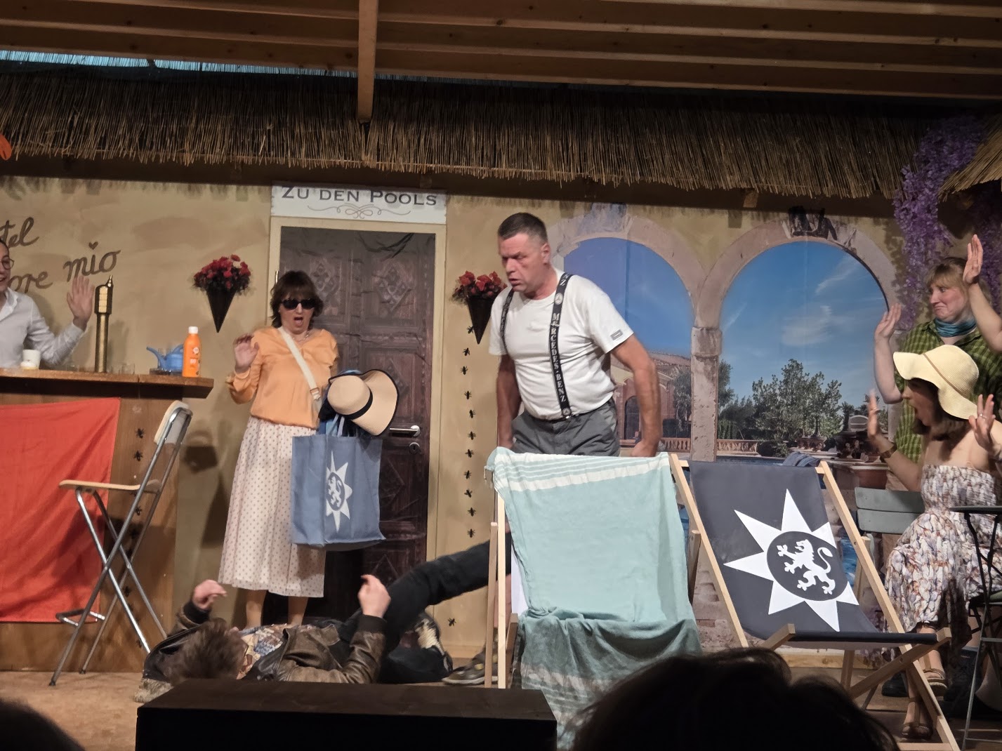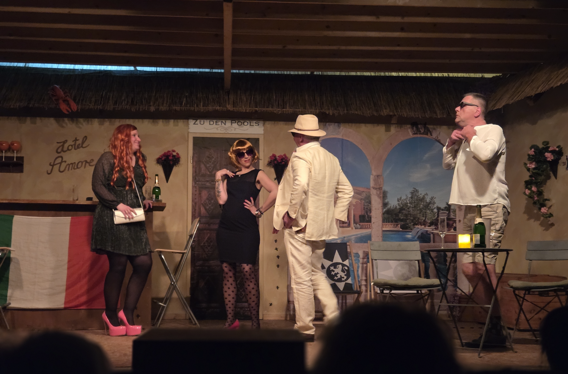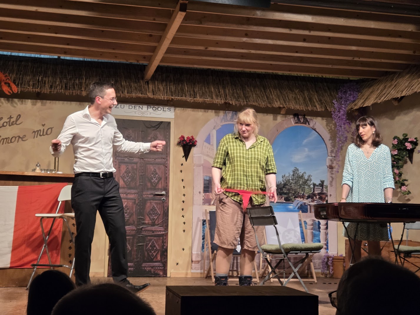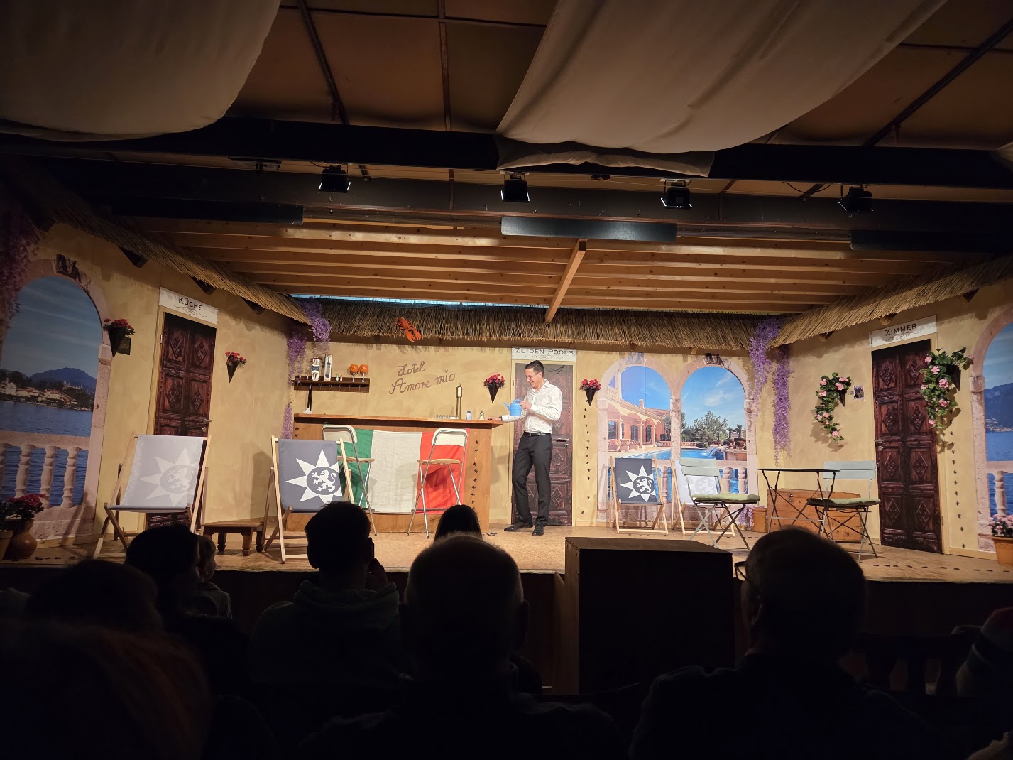 Auserkoren hatten sie sich für ihre Eskapaden das kleine Familienhotel „Amore Mio“, das von der geschäftstüchtigen, wegen der Ameisenplage im Hotel aber ziemlich gestressten Teresa (Petra Staiti) temperamentvoll geführt wird. Ihr Sohn Angelo (Max Hierlwimmer), charmant und gewieft, geht der Arbeit gern aus dem Weg und flirtet lieber mit den Damen des Hauses, auf Wunsch natürlich mit original italienischem Akzent.