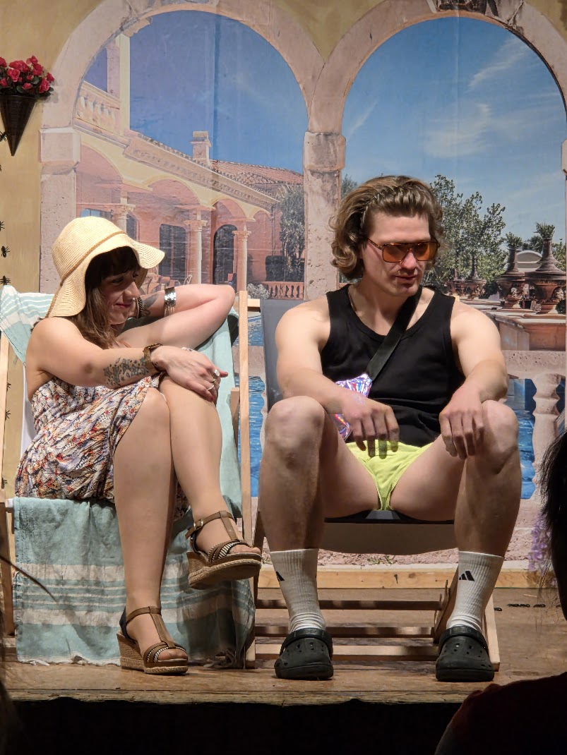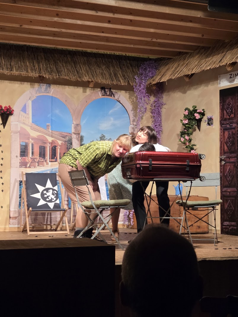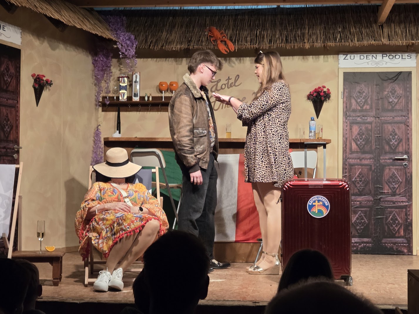 haben auch Drogendealer Ritchi (Justus Schmickler in seiner ersten Rolle), sowie seine Begleitung Chantal (Paula Maur mit Bühnenpremiere), nicht gerade die hellste Kerze auf der Torte und ausgesprochen shoppingsüchtig, den Verbleib des Koffers und damit das Hotel ausgemacht.