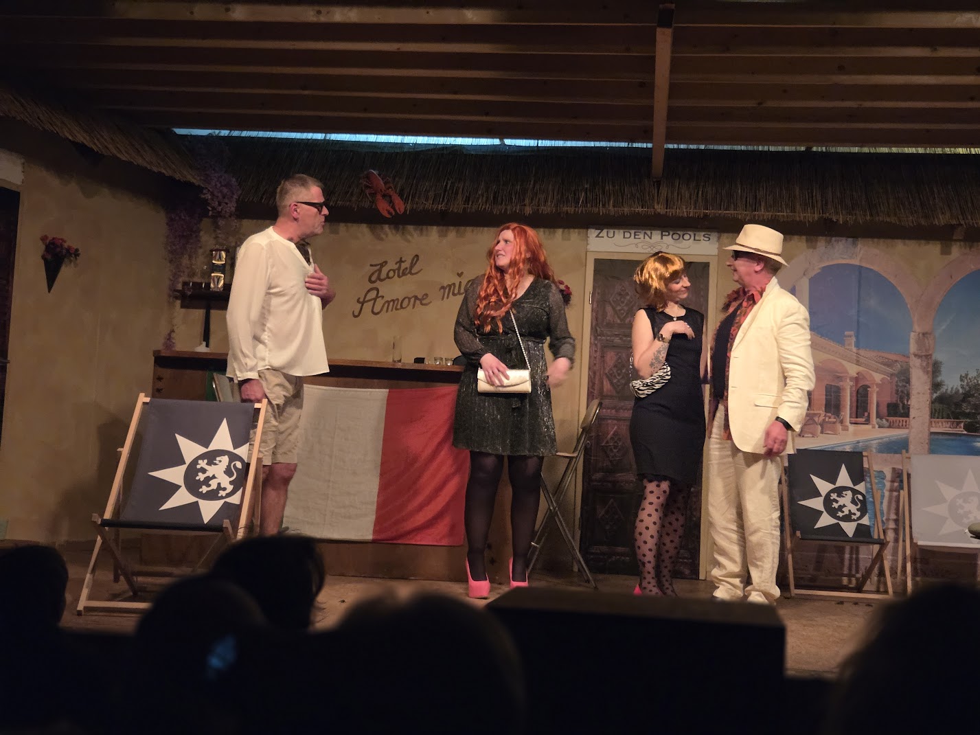 "Ausgesprochen turbulent..." ging es bei der diesjährigen Aufführung der Freilinger Theatergruppe auf der Bühne im Saal Meiershof am Wochenende vom 20. bis 22. März beim Stück "Nix amore am Lago Maggiore" zu. Verantwortlich dafür waren "Horden von Ameisen", ein vertauschter Koffer mit delikatem Inhalt und unerfüllte Liebesgelüste. Vor allem auch die Bühnenneulinge sorgten dabei für beste Unterhaltung. Ein sehr unterhaltsames Stück, bei dem keine Auge trocken blieb und das mit viel Applaus bedacht wurde. Hier ein bebilderter Rückblick!