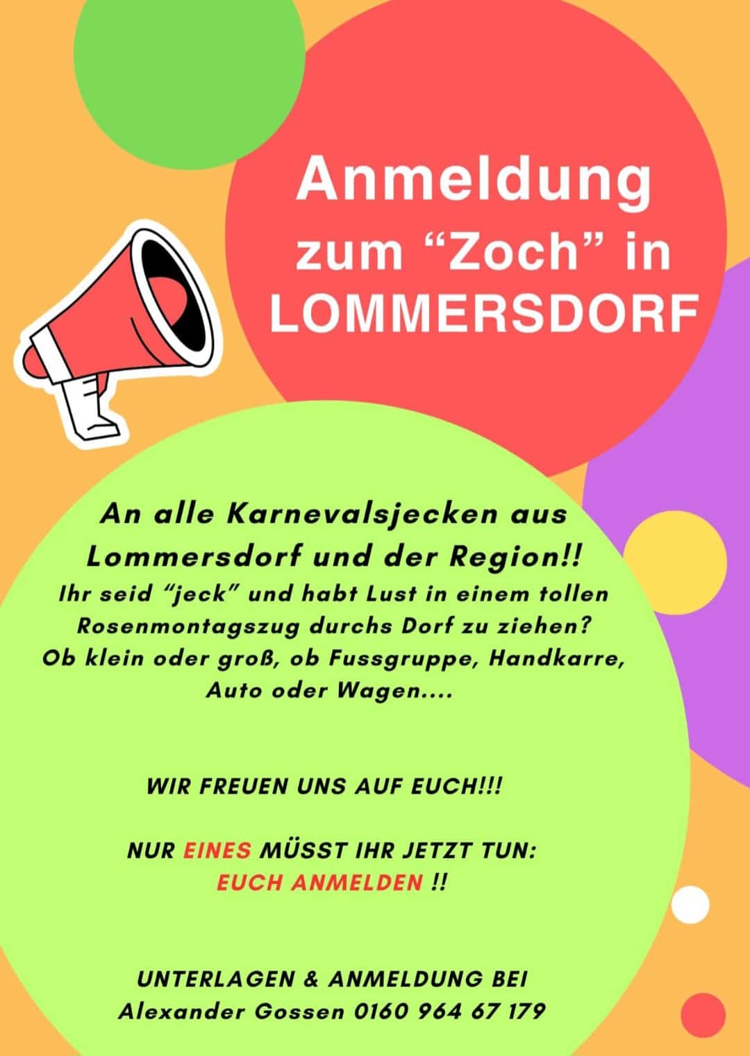 "D'r Zoch kütt"...auch in diesem Jahr wieder an Rosenmontag (16. Februar) in Lommersdorf. Und Ihr könnt dabei sein, wenn ich möchtet: z.B. zu Fuß in einer Gruppe mit Handkarre oder auf einem Wagen, ganz wie man will. Einzige Voraussetzung ist eine vorherige Anmeldung! Wer macht mit?