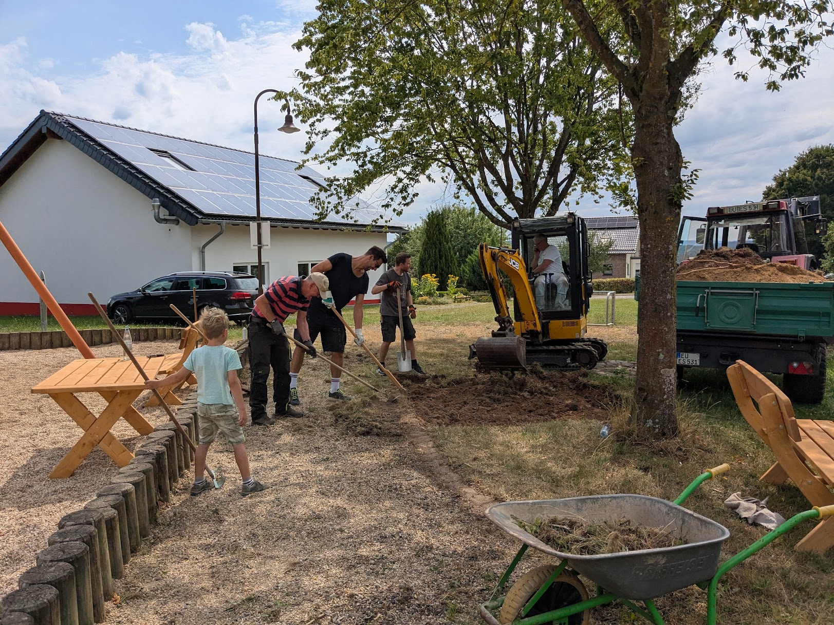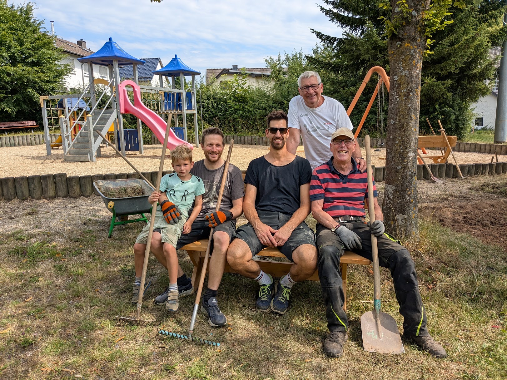 Am Samstag, 19. Juli installierte der Vorstand des Vereins dauerhaft eine Sitzgruppe in unmittelbarer Nähe zum Spielbereich unter schattenspenden Bäumen.