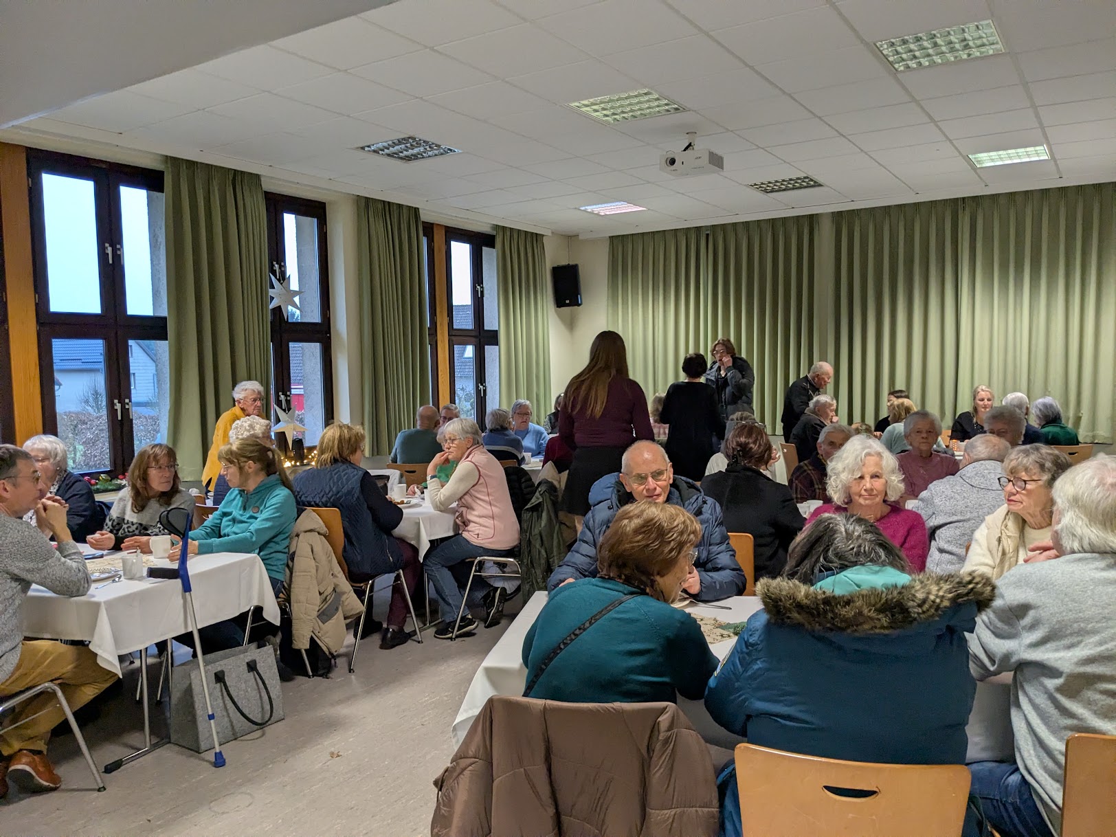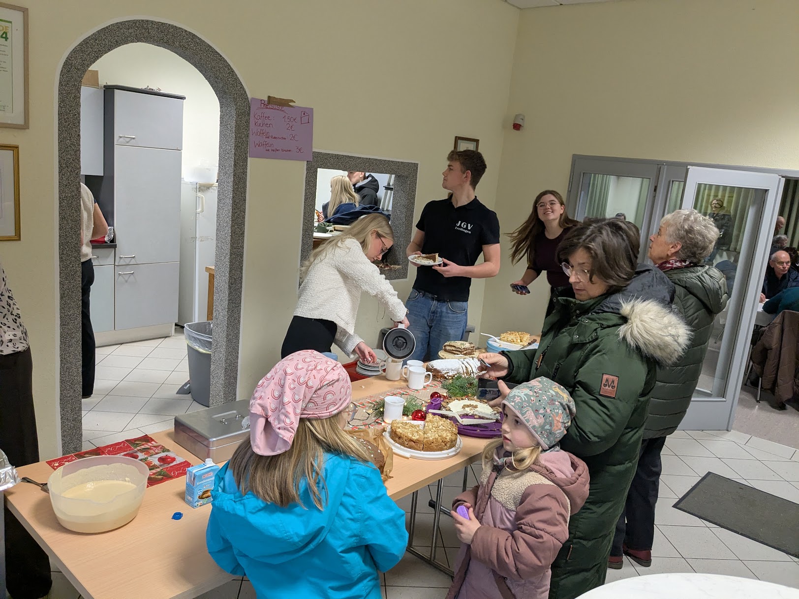 In den gemütlichen Räumen des Bürgerhauses konnte man sich an Kaffee und Kuchen und frisch gebackenen Waffeln mit heißen Kirschen erfreuen. Dabei zeigten die Mädels und Jungs vom Junggesellenverein wieder einmal, dass sie bestens aufgestellt sind, wenn es um die Organisation eines "Kaffeeklatsches" geht.