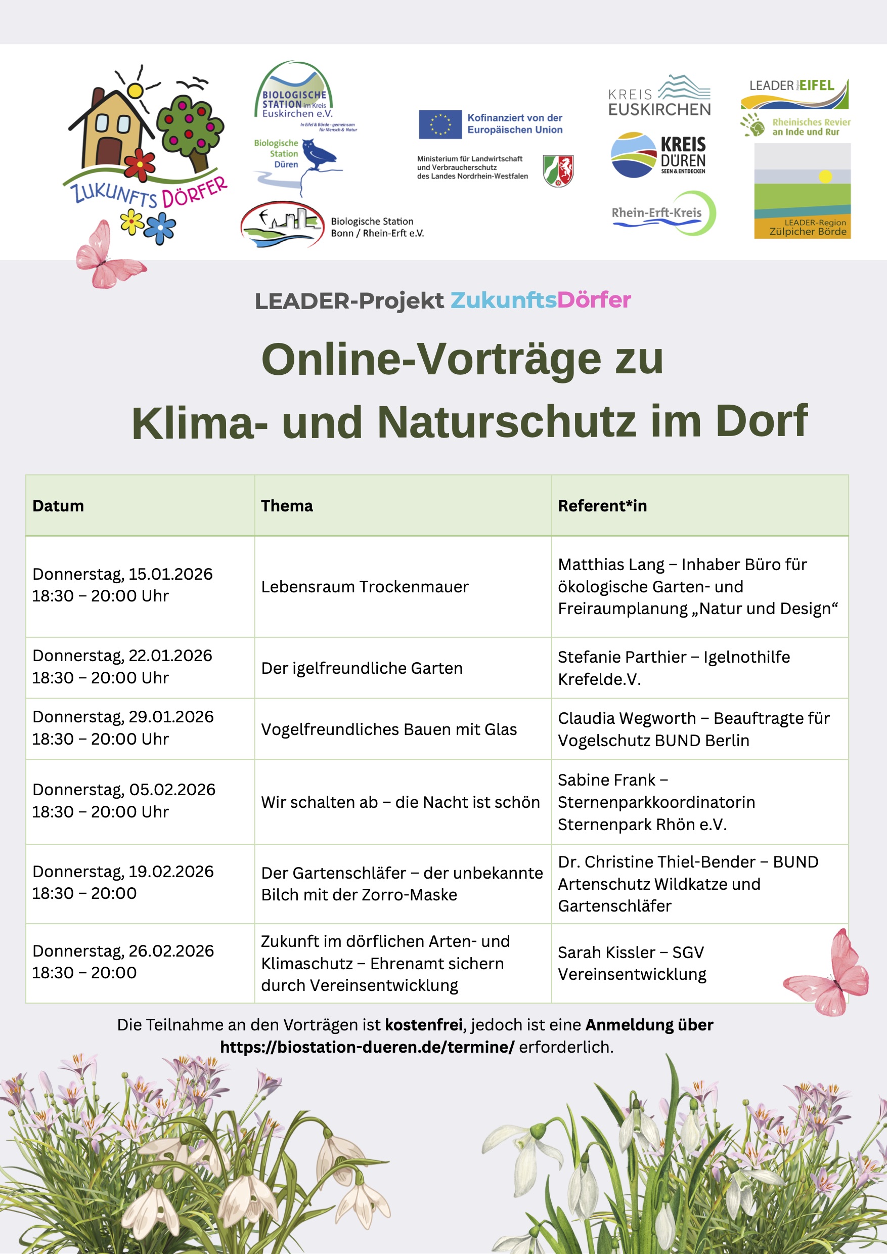 Alle Infos zu den verschiedenen Online-Vorträgen und eine Anmeldemöglichkeit finden Sie unter folgendem Link: Vorträge Klima- und Naturschutz