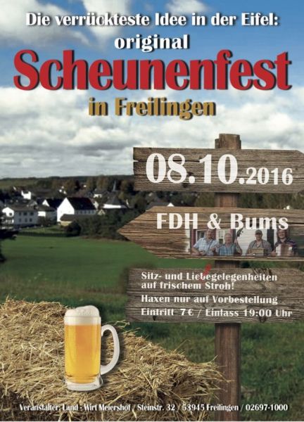 Scheunenfest am 8. Oktober im Saal Meiershof in Freilingen