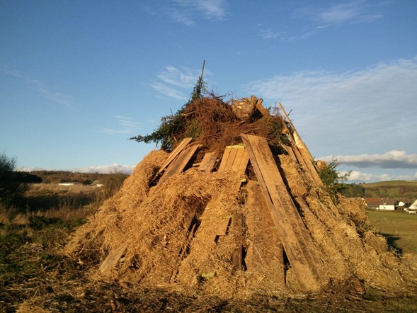 Nun, wer sich freitags vor dem Umzug auf dem Stein, der traditionellen Feuerstelle, einen Eindruck von den Ausmaßen und der Beschaffenheit des diesjährigen Aufbaus des Feuers machen wollte, der hätte wahrlich ernste Zweifel daran bekommen können, ob in Freilingen überhaupt ein weithin sichtbares Feuerspiel geplant war.