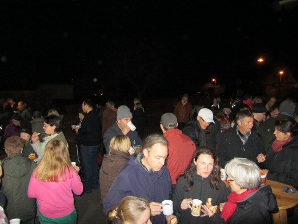 So war es nicht verwunderlich, dass bereits gegen 20.00 Uhr den gemütlichen Gesprächsrunden vor und im Bürgerhaus verkündet werden musste : "Glühwein ist alle ". Und das, obwohl in diesem Jahr weit über 40 Liter des beliebten Getränks erwärmt worden waren. Wow!