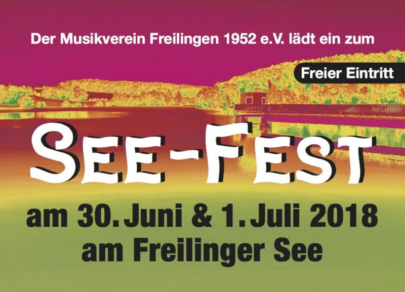 "It's See-time"... Der Musikverein Freilingen 1952 e.V. veranstaltet am 30. Juni und 1. Juli 2018 bereits zum 42. Mal das Seefest am Freilinger See. Auf dem Programm stehen nehmen den gewohnten kulinarischen Genüssen auch wieder gute Musik und eine schöne Atmosphäre am idyllisch gelegenen Freilinger See.