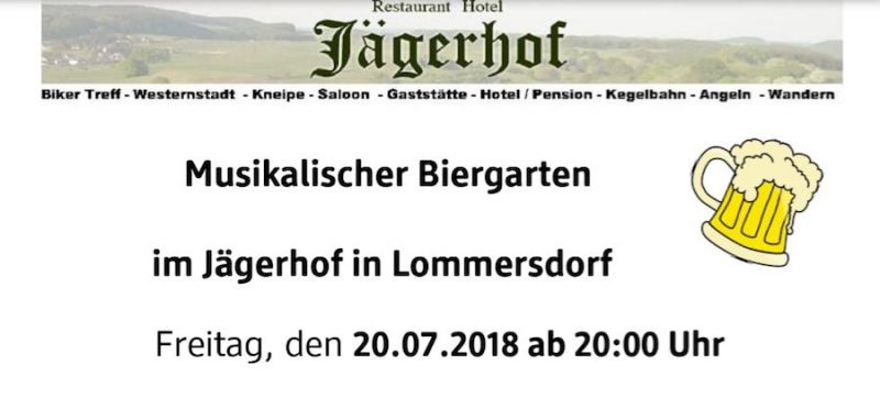 Was gibt es im Sommer schöneres, als bei unterhaltsamer Musik im Biergarten zu sitzen...das hat man sich auch im Lommersdorf gedacht und kurzer Hand für Freitag, 20. Juli 2018 im Biergarten des Jägerhofes zusammen mit den Lommersdorfer Musikanten einen musikalischen Abend in gemütlicher Gartenatmosphäre geplant.