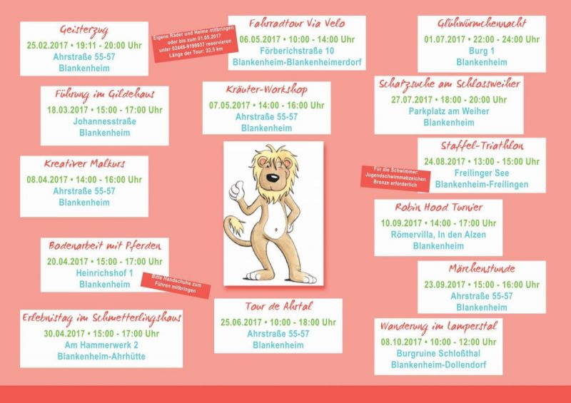 Nach einem Jahr Pause wird in diesem Jahr erfreulicherweise wieder das sog. Blankenheim Diplom angeboten. Wie in den ersten Jahren können in den nächsten Monaten bei zahlreichen Aktionen wieder Stempel gesammelt werden. Insgesamt 14 interessante Veranstaltungen stehen auf dem Programm. Los geht es am Samstag, 25. Februar 2017 mit dem traditionellen Geisterzug in Blankenheim.