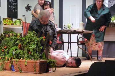Für Gemüsebauer Franz ist es dann schon fast ein „Sechser im Lotto" als der dubiose, aber finanzstarke Mario (Mario Maur, bei seinem Bühnendebüt mit zahlreichen Tattoos geschmückt) auf der Bildfläche erscheint und Franz ein sehr lukratives Angebot für die Aufzucht bisher noch unbekannter, gewinnbringender Arzneipflanzen anbietet.