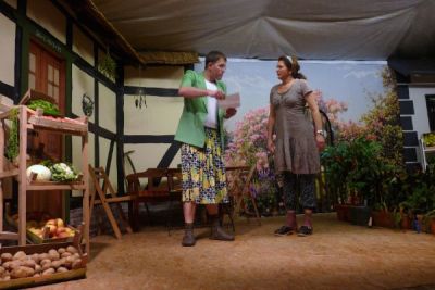 Das sieht bei ihrer Nachbarin Maja Müslein (Brigitte Schneider) ganz anders aus, die als nebenberufliche „Expertin" für chinesische Heilkunst noch ein zweites Standbein hat, das nebenbei auch noch für zusätzlichen Umsatz beim Verkauf ihres Öko-Gemüses sorgt.