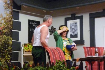 Auch in diesem Jahr wurde wie immer vor einem liebevoll und detailgetreu von Dietmar Faber und Peter Reiferscheid gestalteten Bühnenbild Laientheater vom Feinsten geboten. Das lag nicht zuletzt an dem turbulenten Stück von Bernd Gombold, das sich die Theatergruppe um Regisseur Karl Heinz Ramers in diesem Jahr ausgesucht hatte und mit dem einige Darsteller ihr schauspielerisches Talent wieder einmal voll und ganz ausspielen konnten.