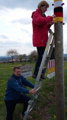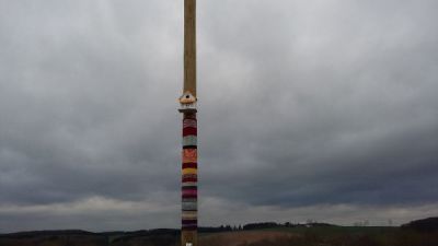 So wurden nicht nur weitere Telekom-Masten entlang des Ahrsteiges mit "Handgestricktem" eingekleidet, sondern auch attraktiver Wohnraum für die heimische Vogelwelt in Freilingen geschaffen, sprich Nistkästen aufgehangen.