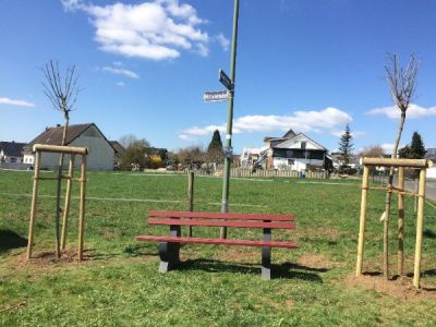 Niederlassen, jedenfalls für eine schattige Ruhepause, kann man sich demnächst besonders gut auf der Bank auf der Ecke Mittelstraße/Industriestraße. Hier wurden zwei große Kugelakazien rechts und links der dort befindlichen Bank gepflanzt, um eine (Wander-) Rast auf einem schattigen Plätzchen zu ermöglichen.