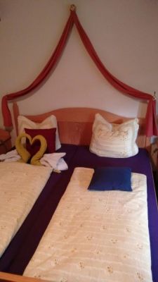 So auch die Waldpension in Rotenburg an der Fulda, Ziel von Etappe Nummer drei. Hier wehte endlich auch mal ein Hauch von Romantik durch das Doppelzimmer, verschönerten doch zwei zu einem Herz vereinte Schwäne das nächtliche Schlafgemach.