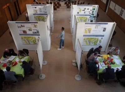 In Blankenheim fanden überdies im Sommer und Herbst 2015 zwei Workshops mit ca. 50 Teilnehmern statt. Dabei saßen an bunt gemischten Tischen Vertreter der Verwaltung, Politik und natürlich Bürgerinnen und Bürger der Gemeinde Blankenheim in der Weiherhalle zusammen und erarbeiteten auf der Grundlage des Masterplans unter fachkundiger Anleitung von Prof. Westerheide und seinem Team die Grundlagen für das erforderliche Konzept.