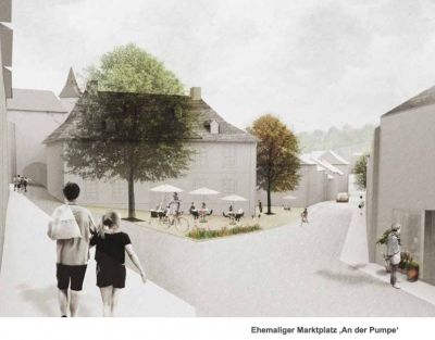 Gefunden werden soll auch eine Losung der Verkehrsfrage mit einem Ausbau und einer Aufwertung der Ahrstraße als verkehrsberuhigtem Bereich mit speziellen, attraktiven Sitzplätzen und Aufenthaltsräumen, z.B. an der Pumpe.