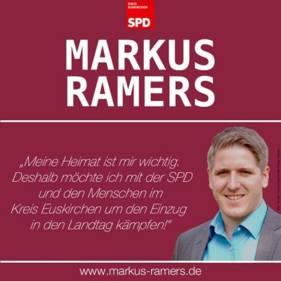 Der Freilinger Markus Ramers, Vorsitzender der SPD im Kreis Euskirchen, wirft seinen Hut in den Ring für eine Kandidatur seiner Partei bei der Landtagswahl im Mai 2017 . Er erklärte am Dienstag, 1. März 2016: „Ich bewerbe mich, weil der Kreis Euskirchen eine Vertretung mit ebenso großem sozialem Wertebewusstsein wie Durchsetzungsvermögen in Düsseldorf braucht – und jemanden, der die Probleme unserer Kommunen im gesamten Kreis wirklich kennt“