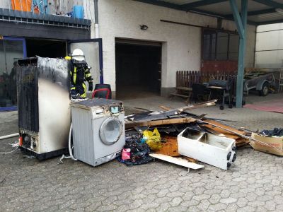 Die Brandstelle befand sich in dem ehemaligen Ausstellungsraum von Otto Hermeling, in dem früher Motor-Cross Maschinen ausgestellt waren und in dem jetzt verschiedene Elektrogroßgeräte abgestellt waren, die in Brand geraten und entsprechend starken Rauch verursacht hatten.