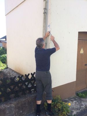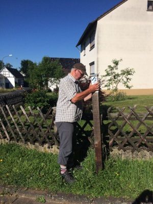 Die beiden machten sich am Mittwoch, 20. Juli bei schönstem Wetter auf, die Wegemarkierung in Freilingen den neuen Gegebenheiten anzupassen. Dazu wurde die alte Beschilderung entfernt und an entsprechender Stelle eine neue Beschilderung aufgestellt.