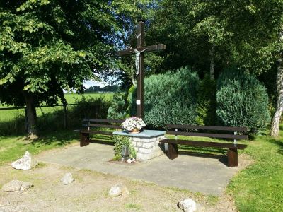Wesentlich verantwortlich für die Ausarbeitung der neuen Streckenführung war Heinrich Bertram, seines Zeichens Vorsitzender und Wegewart des Eifelvereins Ortsgruppe Blankenheim, der in Absprache mit der Ortsvorsteherin die neue Streckenführung ausarbeitete. Dabei lag eigentlich nichts näher, als den Weg am Freilinger Kreuz vorbei führen zu lassen, an dem man sich für eine kleine Rast niederlassen und einen herrlichen Blick über die Eifeler Landschaft genießen kann.