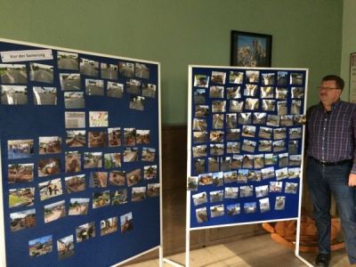 Zahlreiche weitere Bilder waren zudem im Jugendheim an zwei Stellwänden angebracht worden, die den Verlauf und die Ergebnisse der Sanierungsmaßnahme dokumentierten. Michael Hermanns hatte freundlicherweise sein Büro zur Verfügung gestellt, damit man sich die Fotos in Ruhe und im Warmen anschauen konnte, obschon neben dem Musikverein auch das Wetter an diesem Tag glücklicherweise mitspielte.