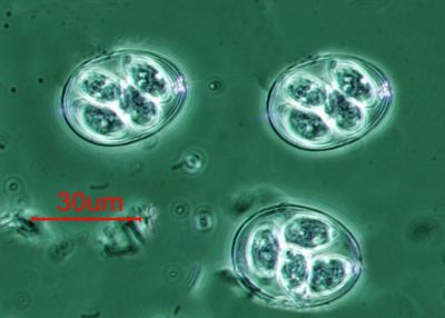 (Kokzidien; Oozysten von Eimeria maxima)