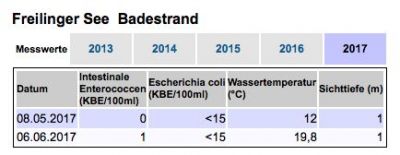Wie alle anderen EU-Badegewässer ist der Freilinger See offiziell als Badegewässer bei den Behörden angemeldet und für das Baden freigegeben. Die Behörden testen diese während der Badesaison mindestens alle vier Wochen und bewerten sie zuverlässig zusammen mit weiteren Daten. Die Messungen erfolgen dabei nach einer EU-weiten Richtlinie. Anschließend werden diese Daten veröffentlicht. Die letzte Messung in Freilingen erfolgte am 6. Juni 2017.