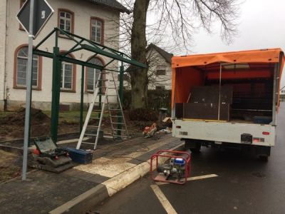 Nach dem Abriss des Häuschen konnte die neue Konstruktion aufgrund der günstigen Wetterlage noch zeitnah aufgestellt werden, so dass kein Fahrgast im Regen oder Schnee stehen muss.