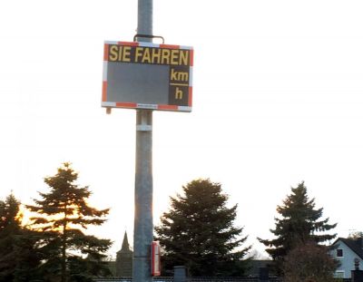 Fertig gestellt ist auch die Installation der Verkehrsmessanlage in der Lommersdorfer Straße. Diese war im Sommer mit Mitteln der Ortsvorsteherpauschale für ca. 1.800 € angeschafft worden, um dem Wunsch der Anlieger nach weiteren geschwindigkeitsreduzierenden Maßnahmen im Bereich der Ortsdurchfahrt nachzukommen. Im August war an der Ecke Brunnenweg/Lommersdorfer Straße bereits die Begrüßungstafel aufgestellt worden, um als "Blickfänger" zur Temporeduzierung für den Durchgangsverkehr beizutragen.