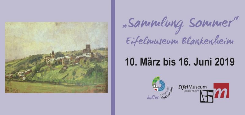 "Sammlung Sommer" - so der Titel der Ausstellung, die ab dem 10. März im Eifelmuseum in Blankenheim zu sehen ist. Ausgestellt werden über 80 Bilder mit Landschaftsmotiven aus der Eifel, u.a. auch aus Blankenheim. Sehr zu empfehlen!