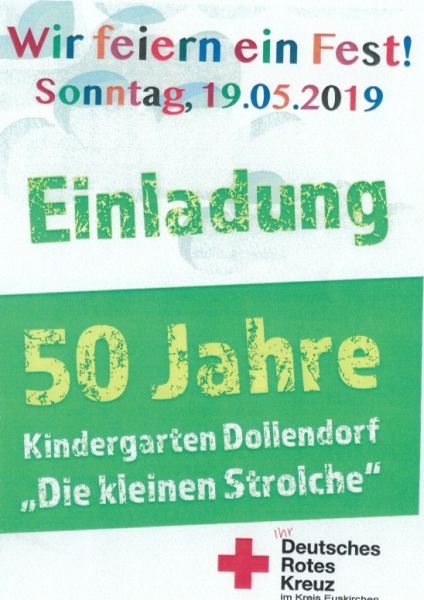 "Die kleinen Strolche werden 50" - mit einem großen abwechslungsreichen Jubiläumsfest feiert der Kindergarten Dollendorf "Die kleinen Strolche" am Sonntag, 19. Mai sein 50jähriges Bestehen. Dazu sind Groß und Klein herzlich eingeladen!