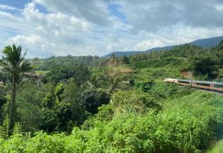 Unser Reiseleiter erzählte uns dann von Militäreinsätzen in Jakarta, alles würde abgeriegelt und geschlossen wegen Corona. Wir fuhren glücklicherweise am nächsten Tag mit der Bahn von Bandung durch eine paradiesische Landschaft nach Yogyakarta.