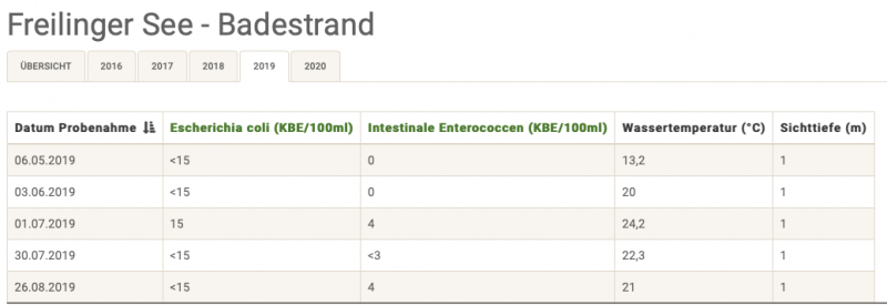 Nähere Infos auch unter folgendem Link: Wasserqualität Freilinger See