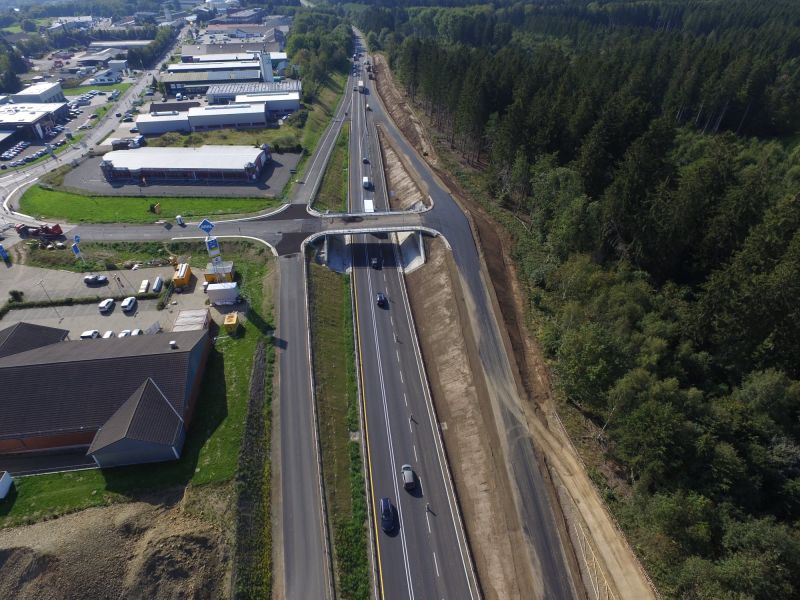 Anfang Mai 2019 hat die Straßen.NRW-Regionalniederlassung Ville-Eifel mit den Bauarbeiten zum Umbau des Knotenpunktes B51/B258 am Gewerbegebiet Blankenheim-Nord begonnen. Jetzt gehen die Bauarbeiten, bei der im Einmündungsbereich eine Brücke errichtet wurde, über die künftig die B51 mittels Fahrbahnrampen an die B258 angeschlossen wird, in die entscheidende Phase.