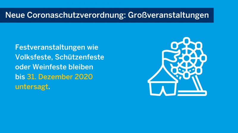 Das Landeskabinett hat die Verlängerung der Coronaverordnungen bis einschließlich 31. Oktober 2020 beschlossen. Veränderungen und Ergänzungen gibt es unter anderem für Weihnachtsmärkte sowie für private Feiern. Private Feierlichkeiten aus herausragendem Anlass (etwa Hochzeitsfeiern) außerhalb des privaten Bereichs müssen ab 50 Teilnehmern vorher beim örtlichen Ordnungsamt angemeldet werden. Hier die wichtigsten Änderungen!