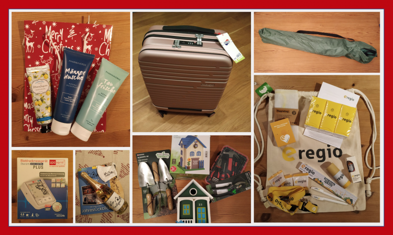 - ein hochwertiges Blutdruckmessgerät und zwei Weihnachtstüten mit verschiedenen Pflegeprodukten (gestiftet von der Rathaus Apotheke Blankenheim)...gerade zur Zeit müssen wir besonders auf unsere Gesundheit achten!