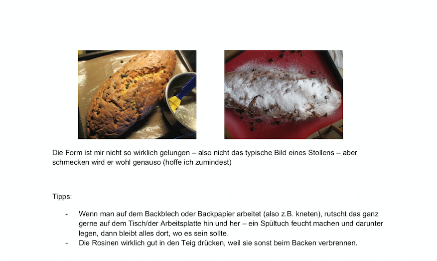 Aber jetzt beginnt wenigstens eine Zeit, auf die wir uns normalerweise das ganze Jahr freuen, zumindest auch, was die kulinarischen Genüsse betriff: die besinnliche Adventszeit mit alle ihren vielen besonderen Leckereien im Gepäck. Eine davon ist der "Christ- oder Weihnachtsstollen", für den es die unterschiedlichsten Rezepte gibt.