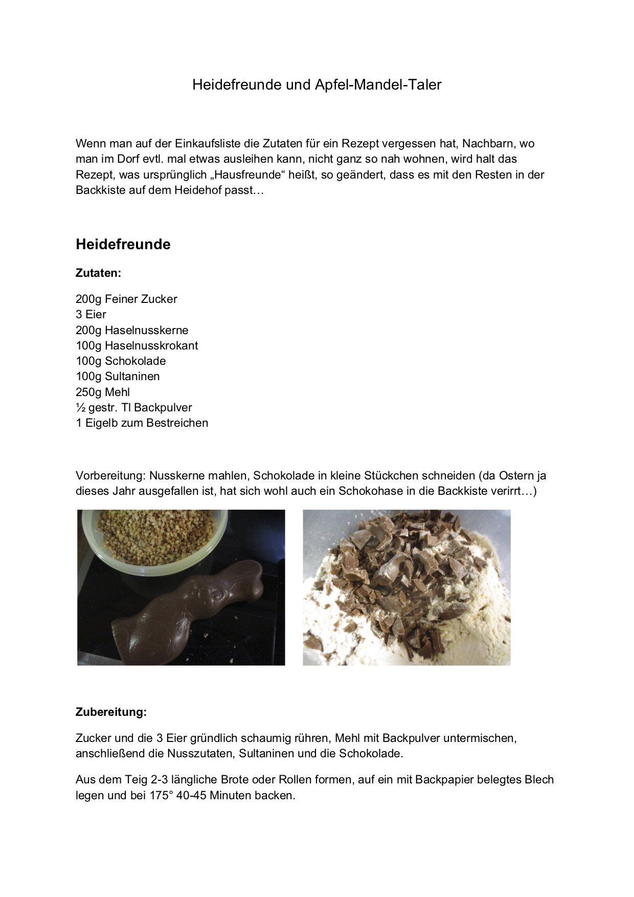 "Back" to the roots - Backen mit Rosi! - So der Titel der kleinen Serie auf WiF, mit der wir in den Wochen bis Weihnachten "einfache", aber leckere Backrezepte vorstellen wollen. Präsentiert werden die Rezepte von Roswitha Hermeling, auch Rosi genannt, die sich bestens damit auskennt. Im 6. Teil hat Rosi etwas aus Resten aus der Backkiste vom Heidehof gezaubert... passenderweise "Heidefreunde und Apfel-Mandel-Taler". Unbedingt ausprobieren!