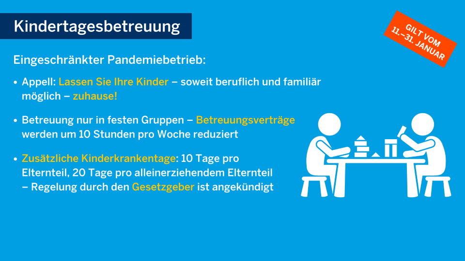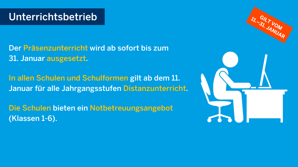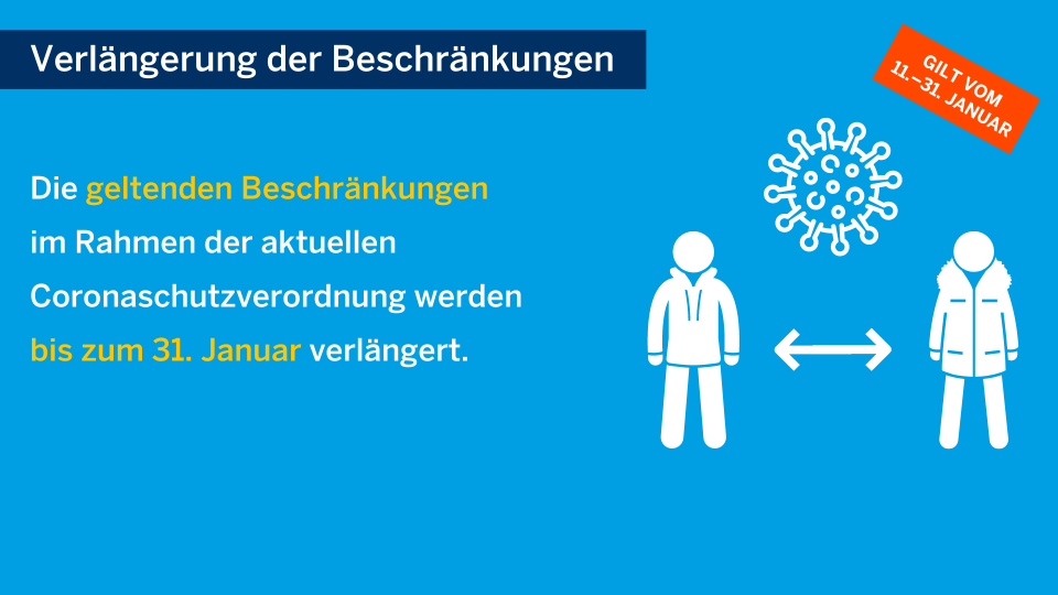 Neben den bislang gültigen Lockdown-Regelungen gelten ab Montag, 11. Januar 2021, folgende Bestimmungen:
