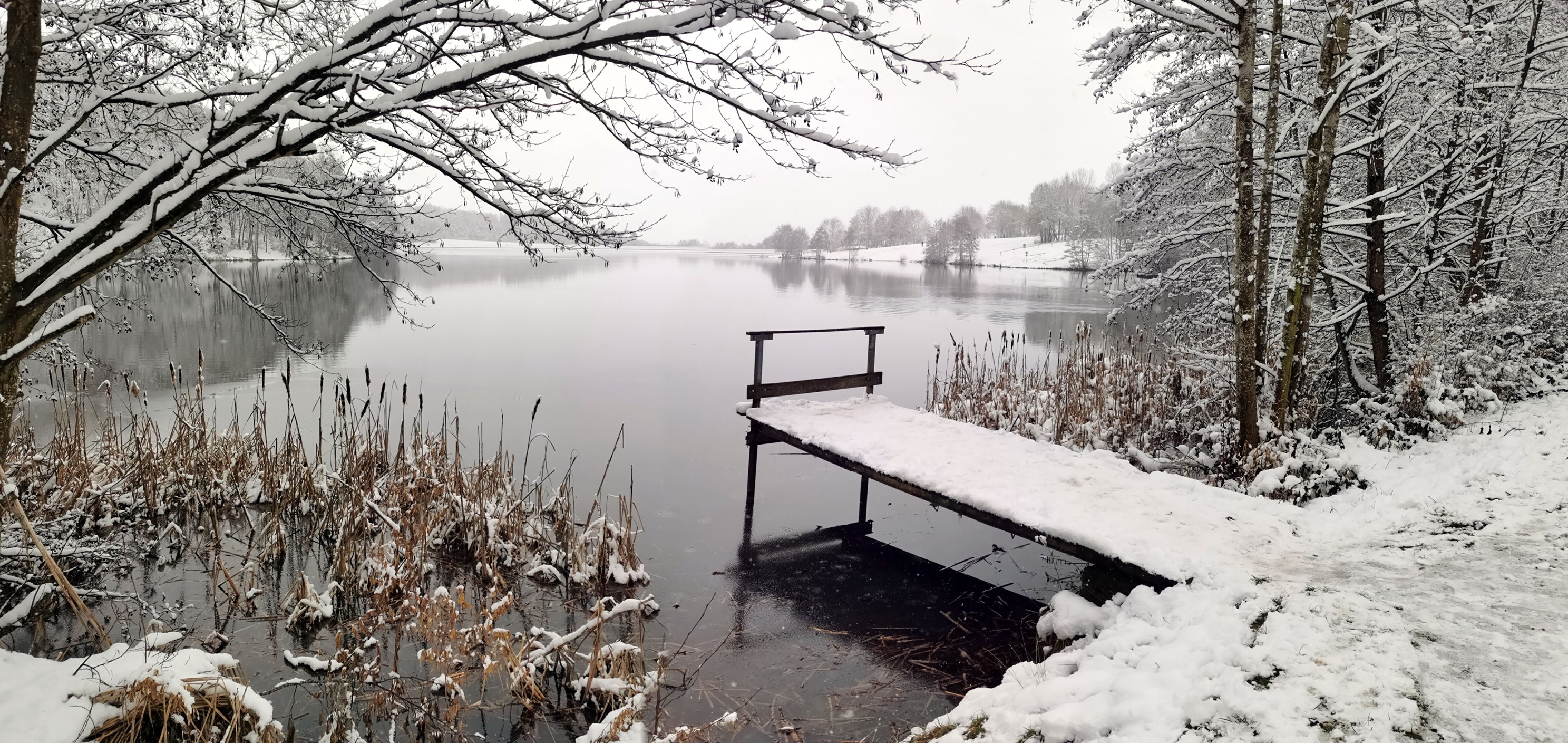 ( ein beliebtes Motiv: der Steg am Freilinger See; Foto: Erwin Mungen Jan 2021 )