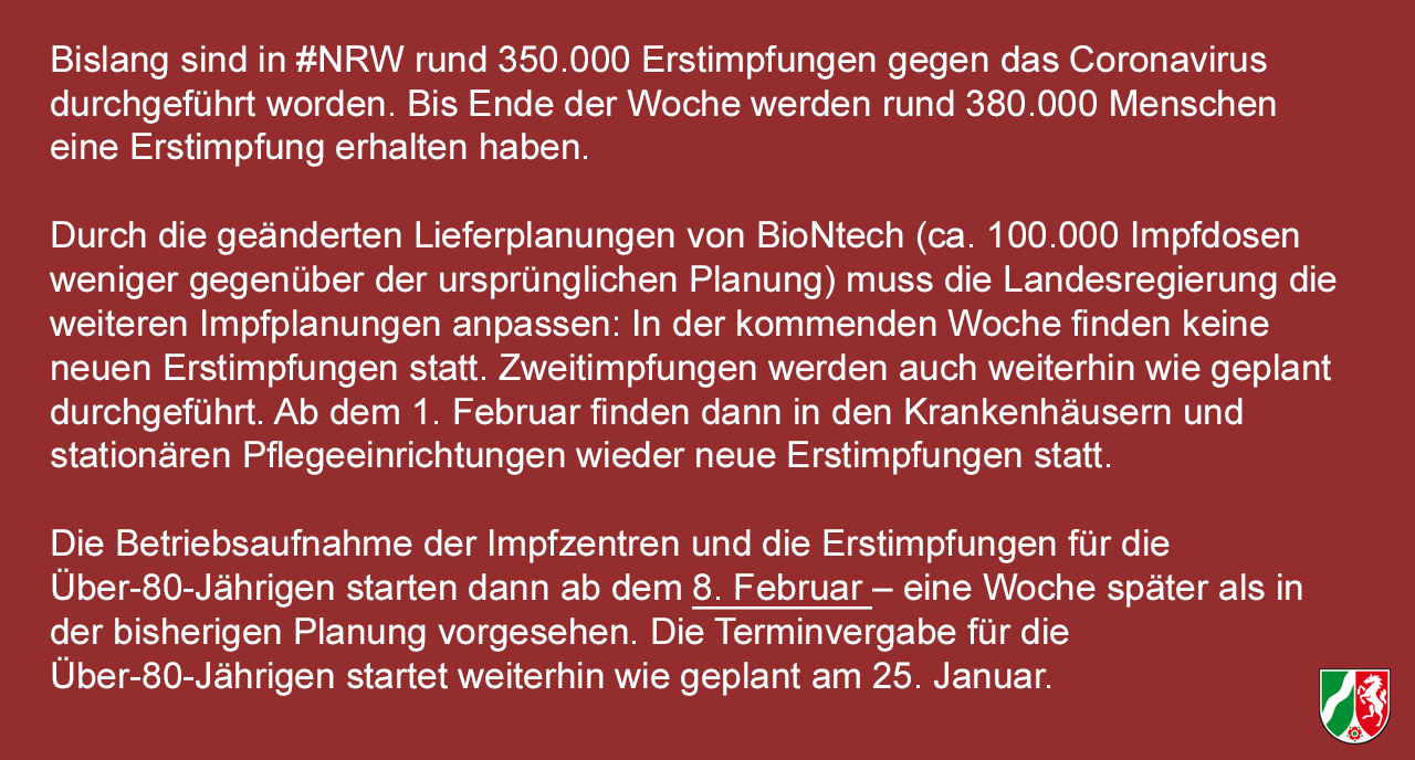 Am weiteren Plan hat sich allerdings nichts geändert. Vor allen Dingen bleibt es dabei, dass die Terminvergabe ab dem 25. Januar starten soll.