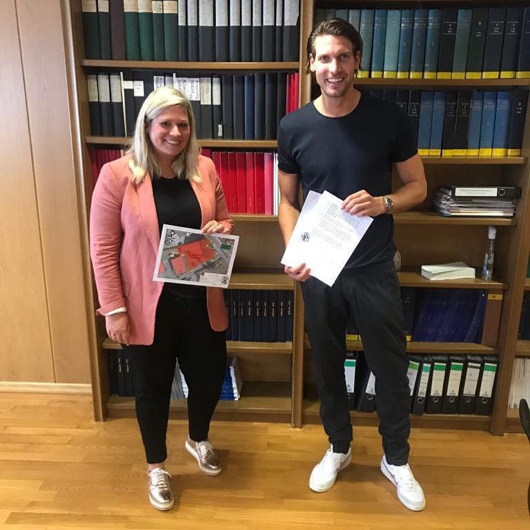 (Bürgermeisterin Jennifer Meuren und Fabian Giefer bei der Vertragsunterzeichnung)