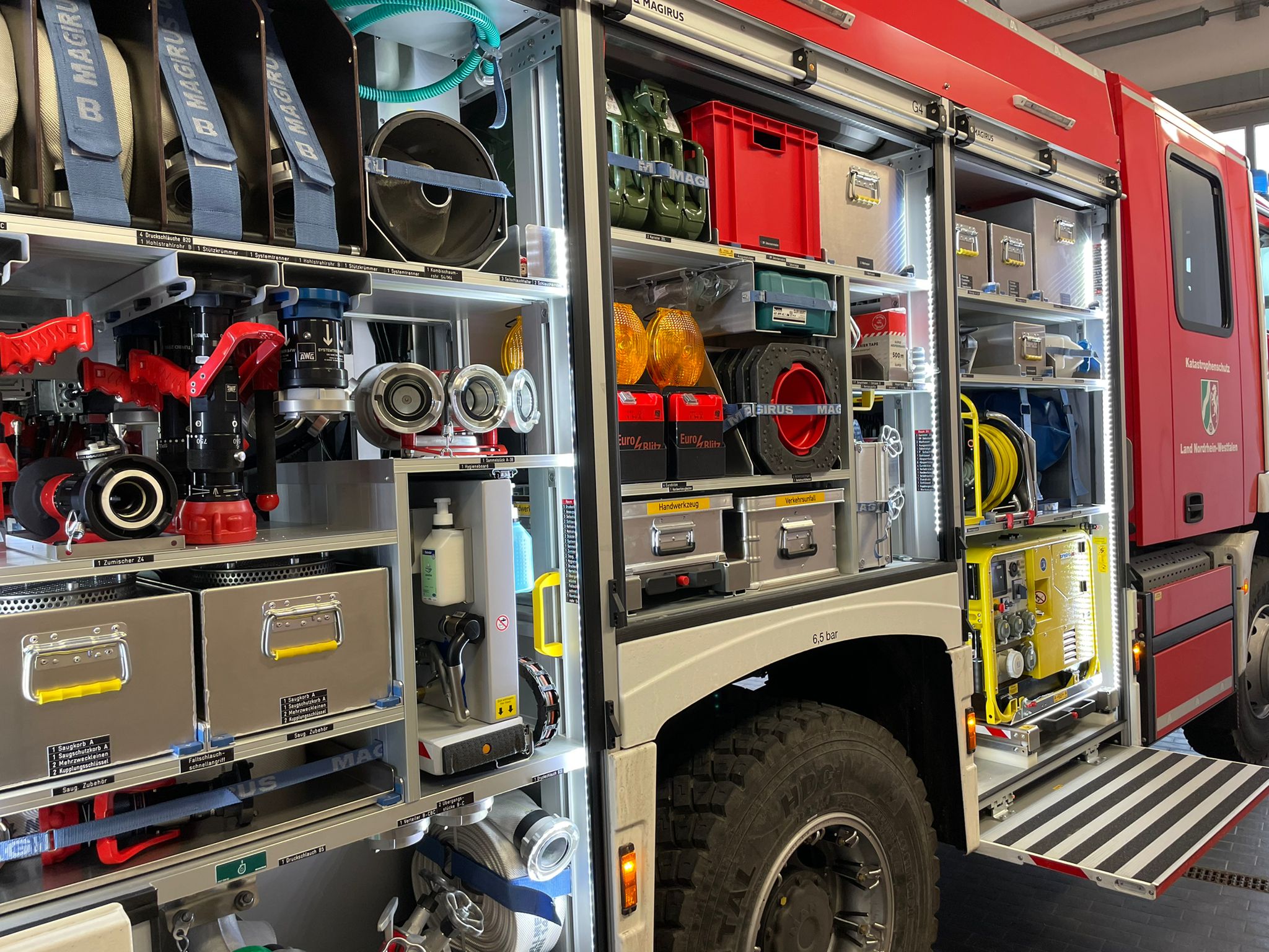 "Die Antwort ergibt sich aus der Frage was ist eine Katastrophe", erklärt Johannes. "Natürlich ist es für jeden individuell eine „Katastrophe“, wenn es in den eigenen vier Wänden brennt und man im schlimmsten Fall sein ganzes Haus verliert. Im Sinne der Gefahrenabwehr ist das aber ein „normales“ Schadensereignis. Das heißt eine Katastrophe sind schwerwiegendere Lagen, wie Hochwasserlagen, wie wir sie selbst im Sommer erlebt haben, große Waldbrandereignisse oder schwere Sturmereignisse. Also Einsätze für die man in der Regel neben den eigenen kommunalen Einsatzkräften weitere Kräfte zur Unterstützung benötigt. Auf dem LF20 Kats fehlen beispielsweise Einsatzmittel wie ein Überdruckbelüfter, um ein Gebäude rauchfrei zu bekommen. Dafür ist das Fahrzeug darauf ausgelegt große Mengen Wasser zu fördern (geeignet für den Waldbrand und Hochwasser), hat eine umfangreiche Ausstattung zur Waldbrandbekämpfung und ist darüber hinaus auch für ein „normales“ Schadensereignis ausgestattet."